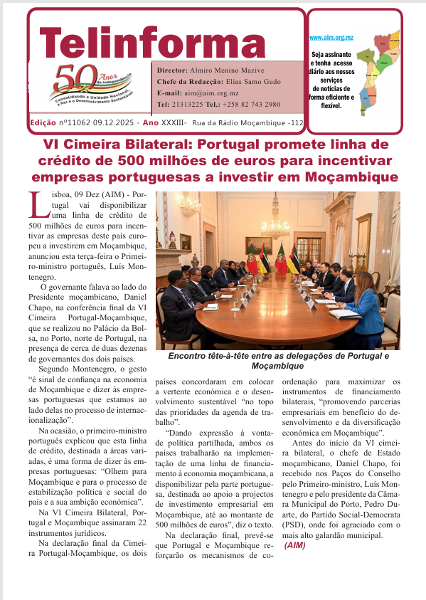 He also shared his government’s vision for the current five-year period, calling on the Mozambican community to promote a positive image of the country in Portugal.