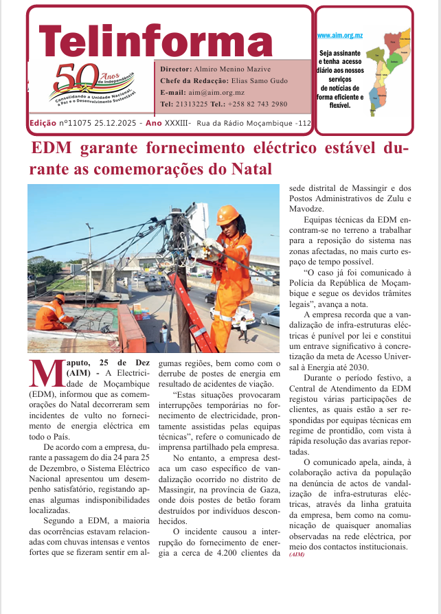 Grispos said he had noted that the shelves are full of Mozambican produce. This is reducing the pressure on the demand for foreign exchange. Among the goods where demand is almost completely satisfied by Mozambican produce are maize flour, salt, meat, sugar and mineral water.